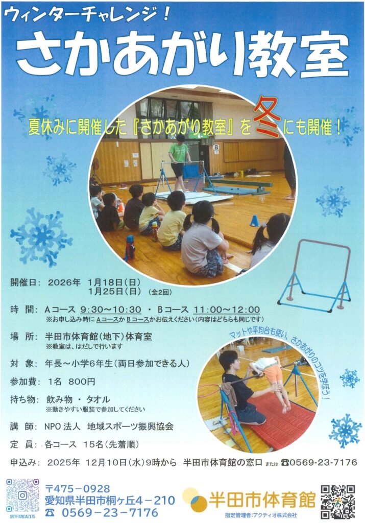夏休みに開催した「さかあがり教室」を冬にも開催します!