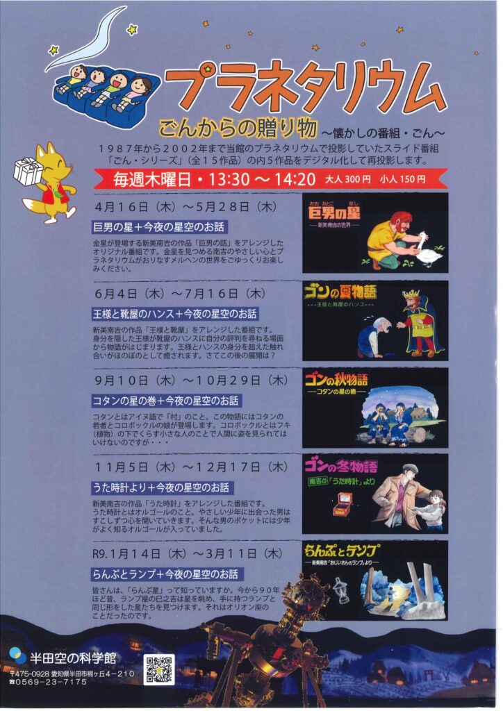 1987年から2002年まで当館のプラネタリウムで投影していたスライド番組をデジタル化し、再投影します。初回は「巨男の星」新美南吉の童話「巨男の話」をアレンジしたオリジナル番組です。
